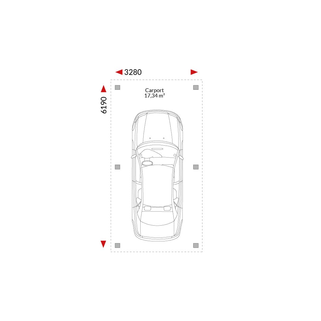 Enkele carport met lessenaarsdak (17,34 m²); buitenafmetingen 2,98 m x 5,82 m.