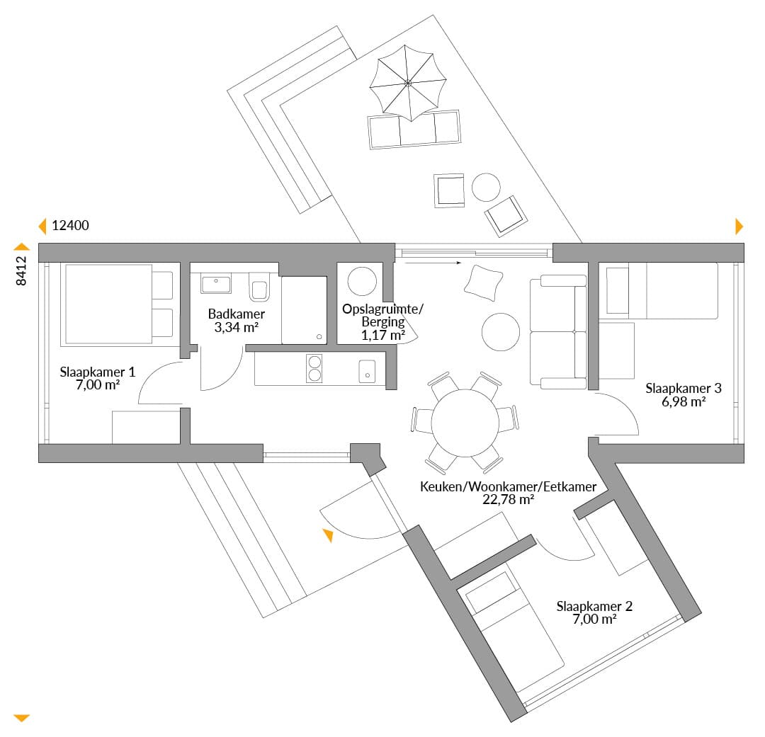 Comfort en functionaliteit: Je hoeft echt geen eigen steiger vanaf je huis naar het meer te hebben om van dit ruime vakantiehuis te genieten! Ook zonder een privé-waterkant biedt dit tijdelijke huis met grotere modules volop voordelen. De L-modules en een aangebouwde zijvleugel zorgen voor veel ruimte voor een woonkamer, eetkamer en keuken met toegang tot het terras. Er zijn drie slaapkamers van goede grootte met bijna 4 meter brede glazen gevels, zodat je vanuit je bed in alle comfort kunt genieten van de natuur!